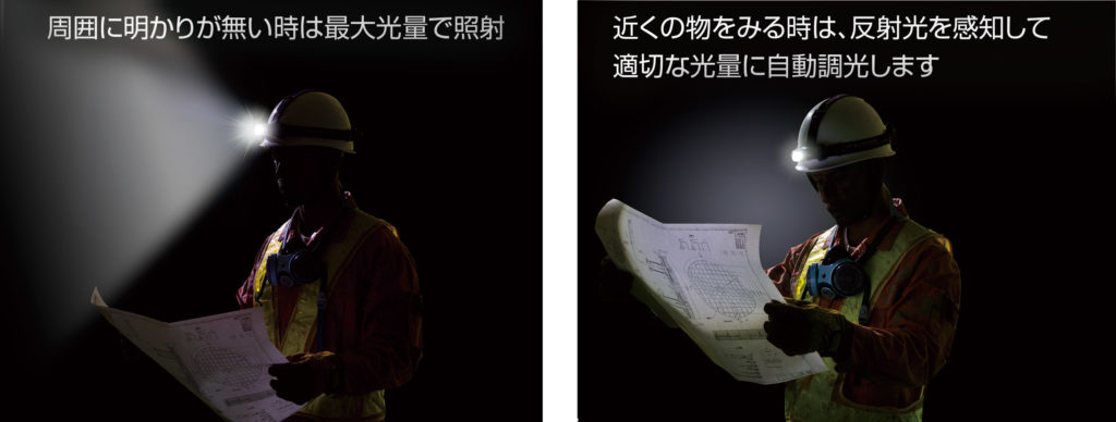 このセンサーを搭載したライトは、屋内外や手元と遠方を見る作業をする際に便利です。