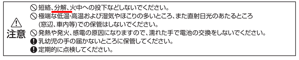 取扱説明書の注意書きには、このように書かれています!