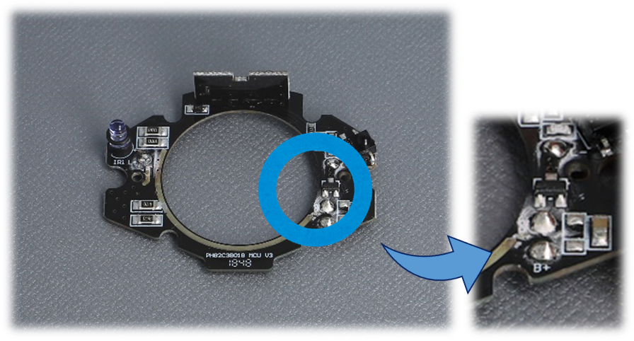 Highモード、Midモード、Ecoモードといった3段階の明るさと点灯時間の細かな情報も薄い板で制御しているのです。基板はたくさんの情報が集約されている重要な部品なのですね!