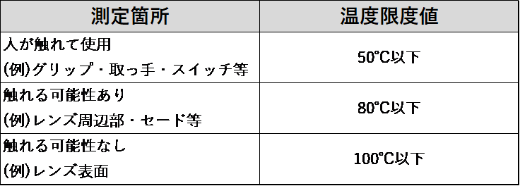 測定箇所及び判定基準(温度限度値)