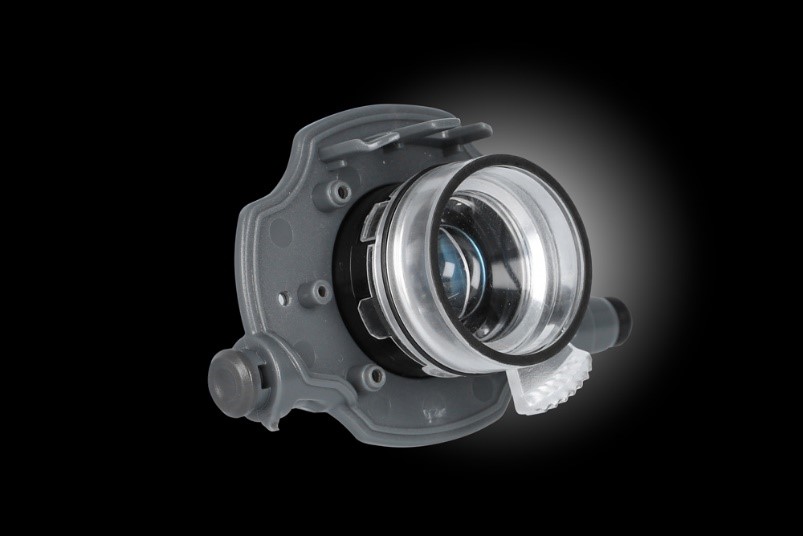 本体のプラスチック、レンズ、フォーカスレバーは、それぞれプラスチックの溝に互いがはまっており、フォーカスレバーが動くことによって、内部のレンズが同時に動く仕組みになっています。