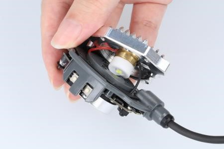 ヘッドライトの後ろ側はヒートシンクが占めており