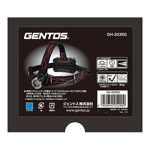 - 付属品:すべり止め付きヘッドバンド、ヘルメットホルダー×4個、、USB Type-Cケーブル(50cm)、専用ACアダプター(5V / 2A)、専用充電池