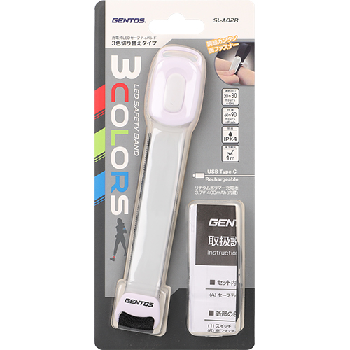 - 3色(赤、緑、青)切り替え可能セーフティバンド