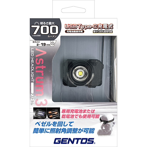 - 明るさ(約):700ルーメン(High時)/ 250ルーメン(Midモード時)/ 75ルーメン(Ecoモード時)/ 4ルーメン(下部赤色LED)