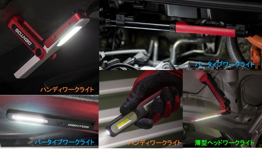 ご紹介した他に、ジェントスにはUV LED搭載の UVワークライトや 高演色LEDを搭載した高演色ワークライト、更に専門的な用途の 防爆ライトがあります。