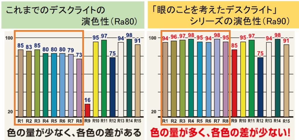 図4.「眼のことを考えたデスクライト」シリーズの演色評価数