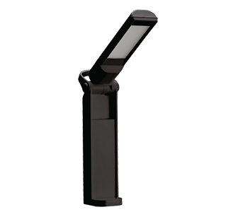 置き場所に困らないコンパクト設計。オン/オフのみのシンプルな操作性で、光の方向を自在に調節できる2軸回転設計。LED+導光板光源を採用することで、多重影になりにくい。