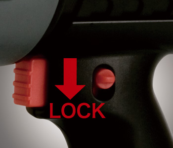 スイッチロック機構で誤作動防止。