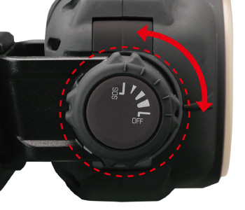 4モードスイッチで3段階の明るさ+SOS点滅へ瞬時に切替。
