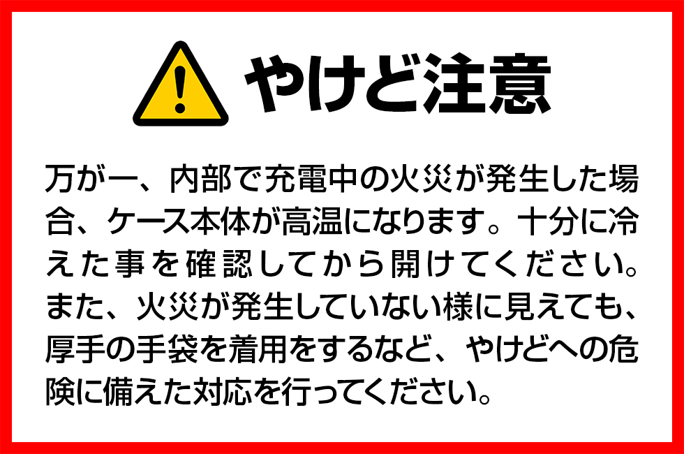 - This product is not for avoiding the ignition of rechargeable battery. This product reduces the risk of fire spread.