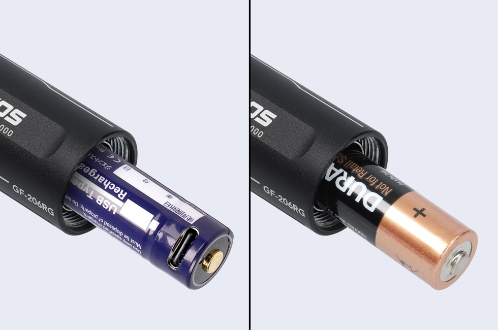 テールキャップを開け、専用充電池を取り出す