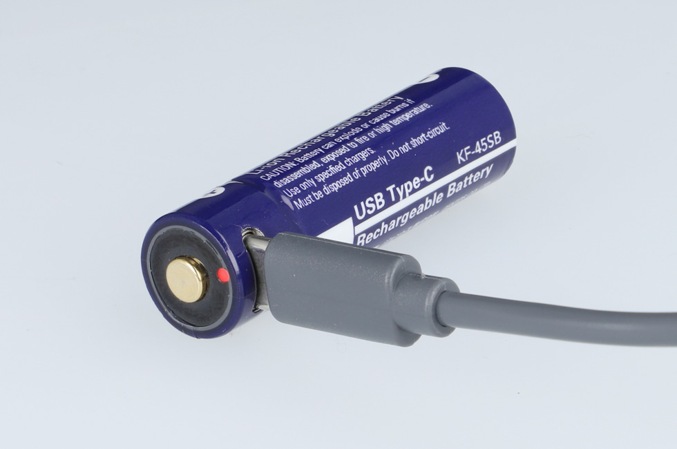 テールキャップを開け、ライト本体から専用充電池を取り出し、USB Type-Cコネクタを直接差し込んでください。