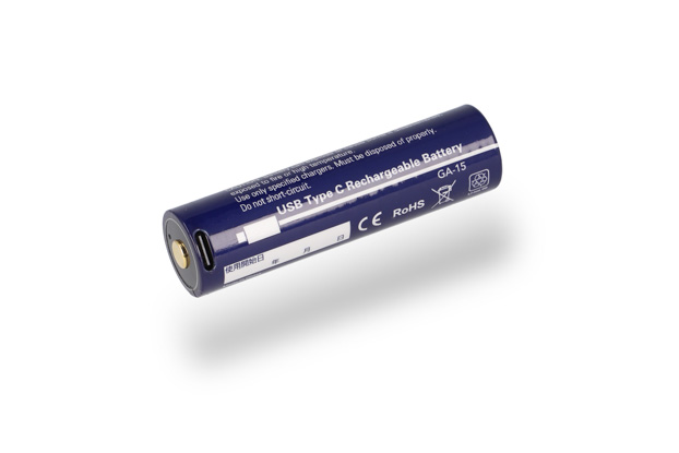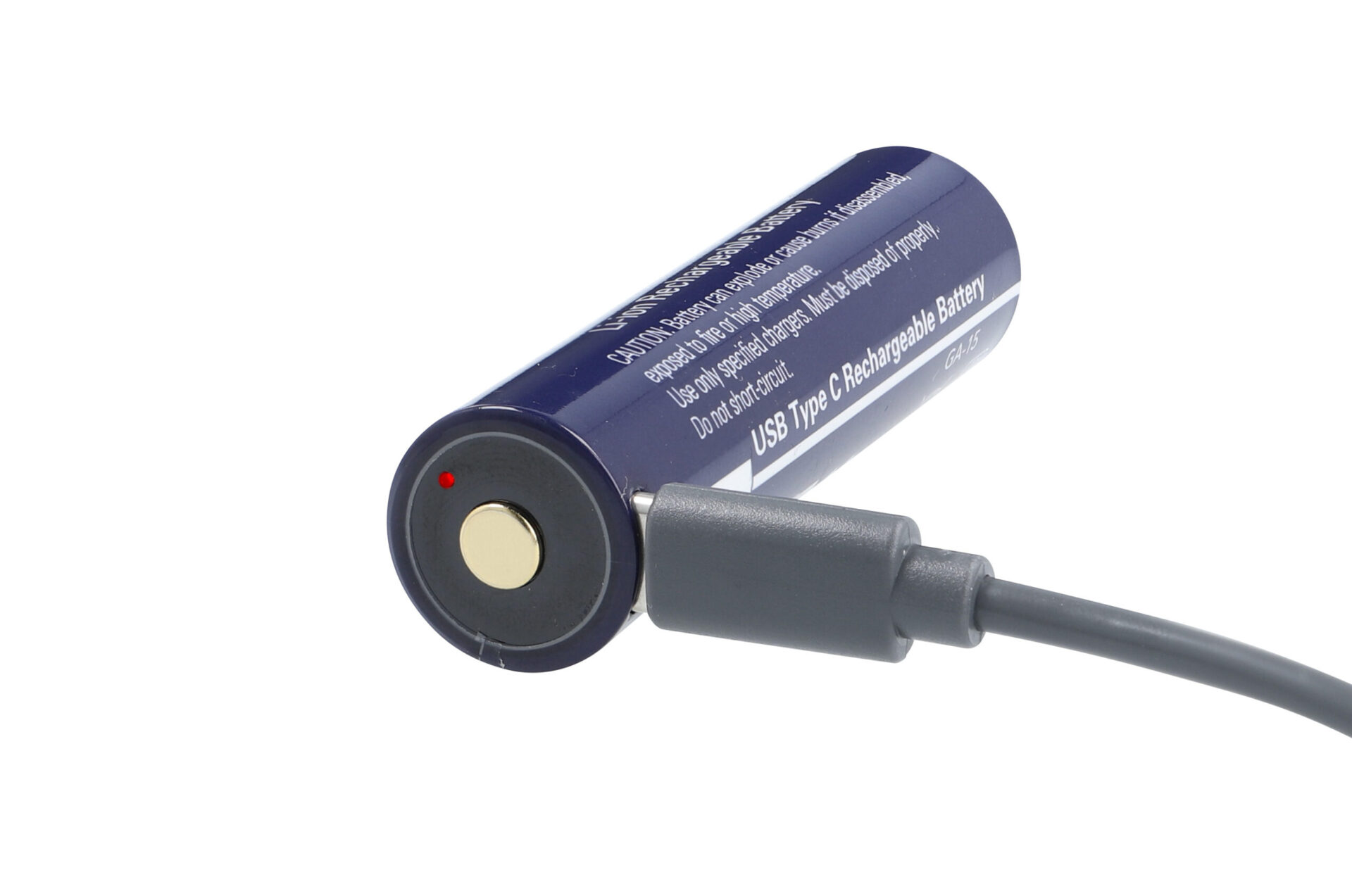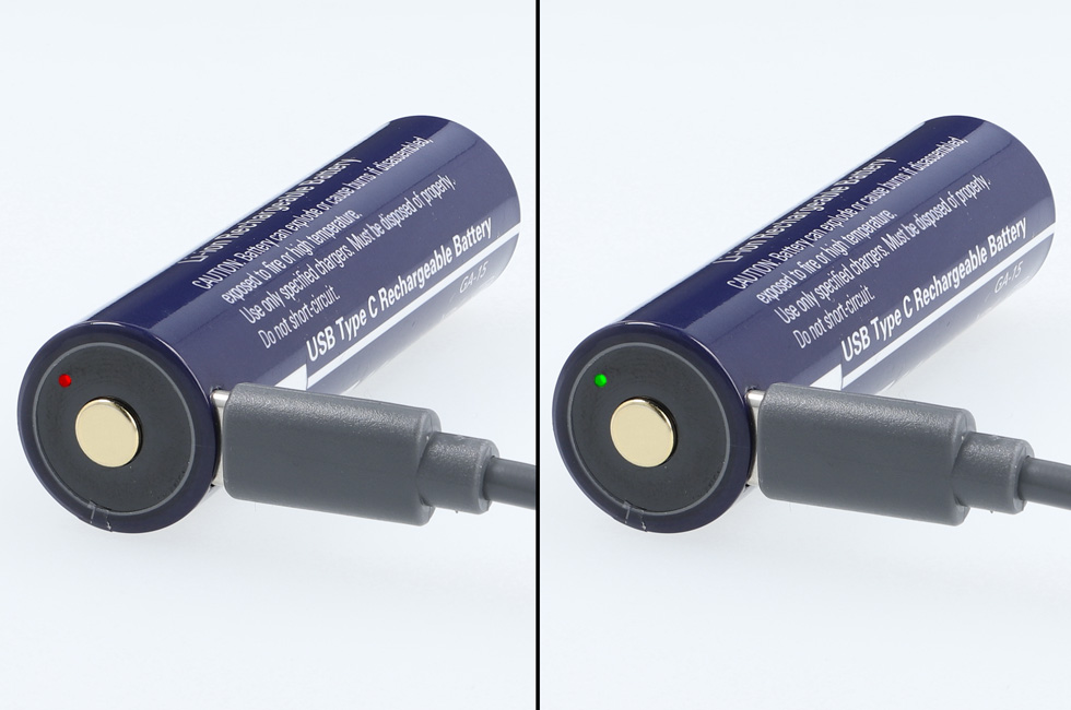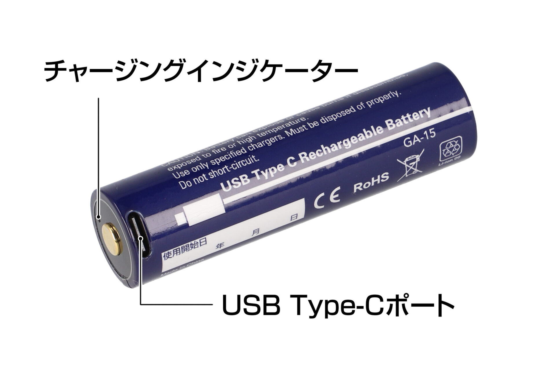テールキャップを開け、ライト本体から専用充電池を取り出し、USB Type-Cコネクタを直接差し込んでください。