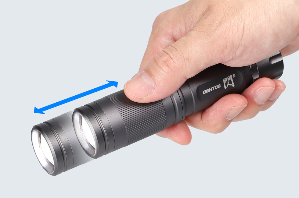 ヘッド部をスライドさせることで、スポットビーム(ウルトラスポットビーム)からワイドサークルビームまで無段階に調節可能。