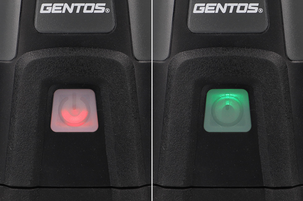 ●緑点灯:十分な電池残量があります ●赤点灯:電池残量が少なくなってきています。 ●赤点滅:電池残量がありません。