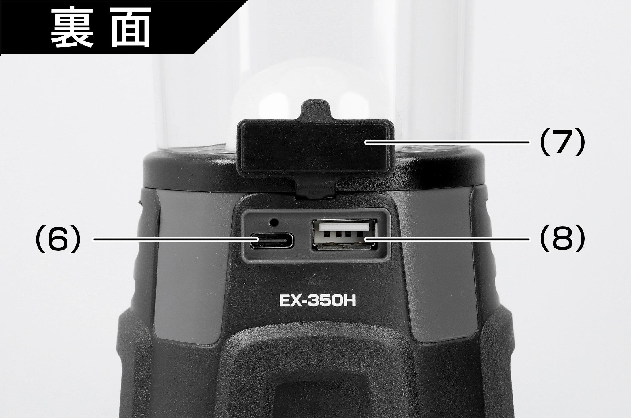 (6) USB Type-Cポート(充電用) (7) USBポートカバー (8) USBポート(給電用)