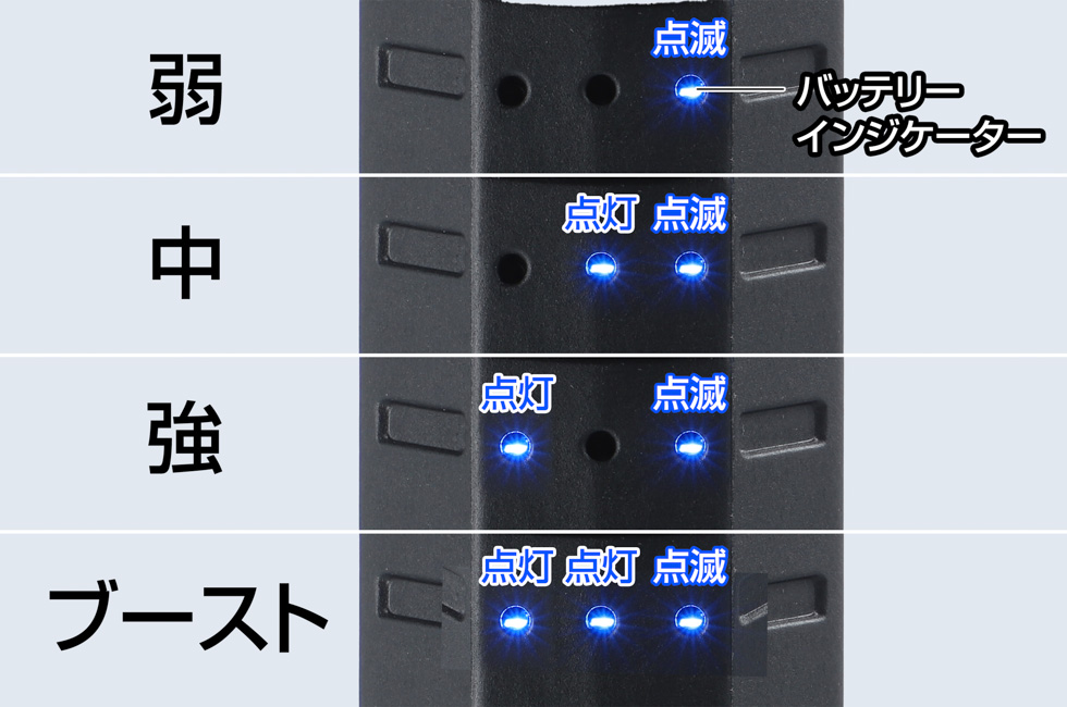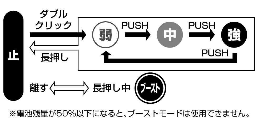 | ※電池残量が50%以下になると、ブーストモードは使用できなくなります。 |