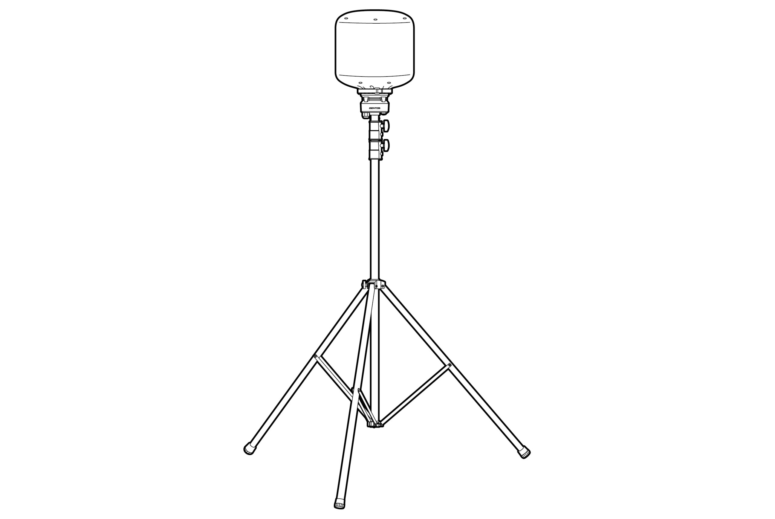 | ※本体が倒れたり、可動部に手を挟まないよう十分注意して行ってください。 ※三脚を十分に広げる場合、直径約1.4m程度の場所が必要です。 ※転倒防止のため、三脚は可能な限り広げてご使用ください。 |