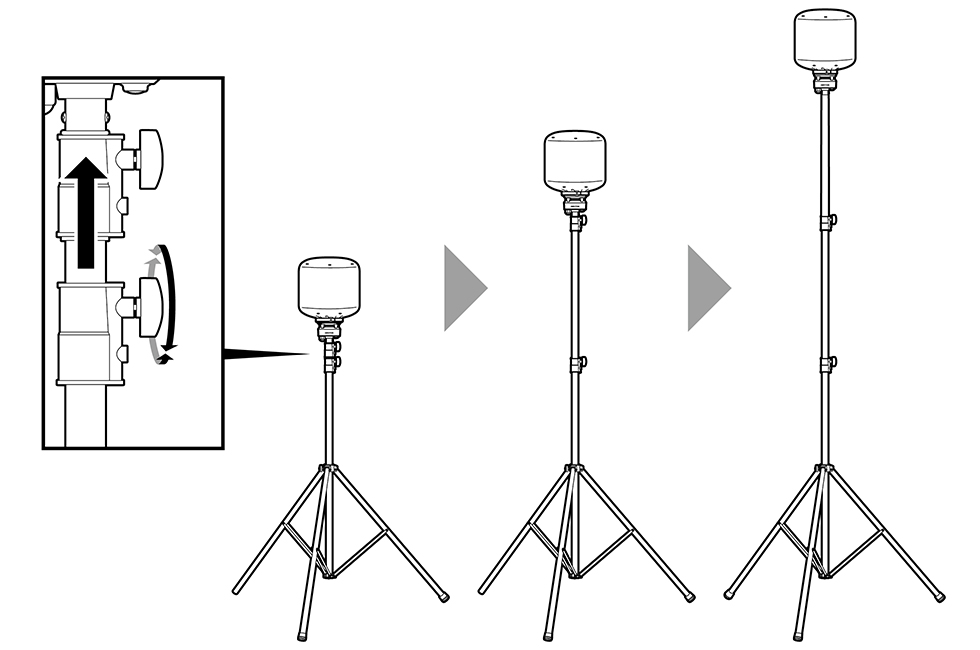 高さ調節ボルトを緩め、必要な高さまで伸ばし、高さ調節ボルトをしっかり締めてください。最大3.9mまで伸縮可能です。