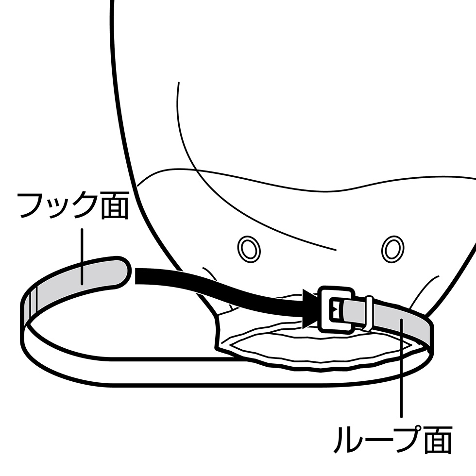 バックルに通し、軽く巻いておく