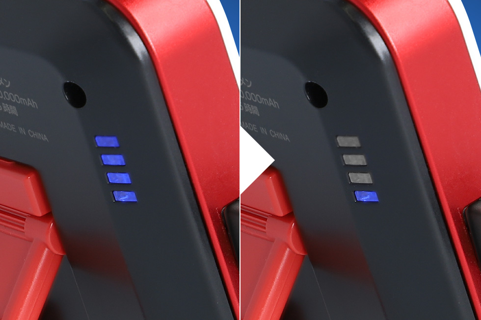 また、製品によっては充電中および/または給電中は点灯しません。その場合はスイッチ操作をしないでください。