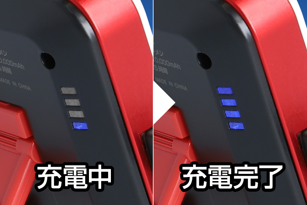 一部製品では、充電中にインジケーターが点滅し、充電完了後にインジケーターが点灯します。