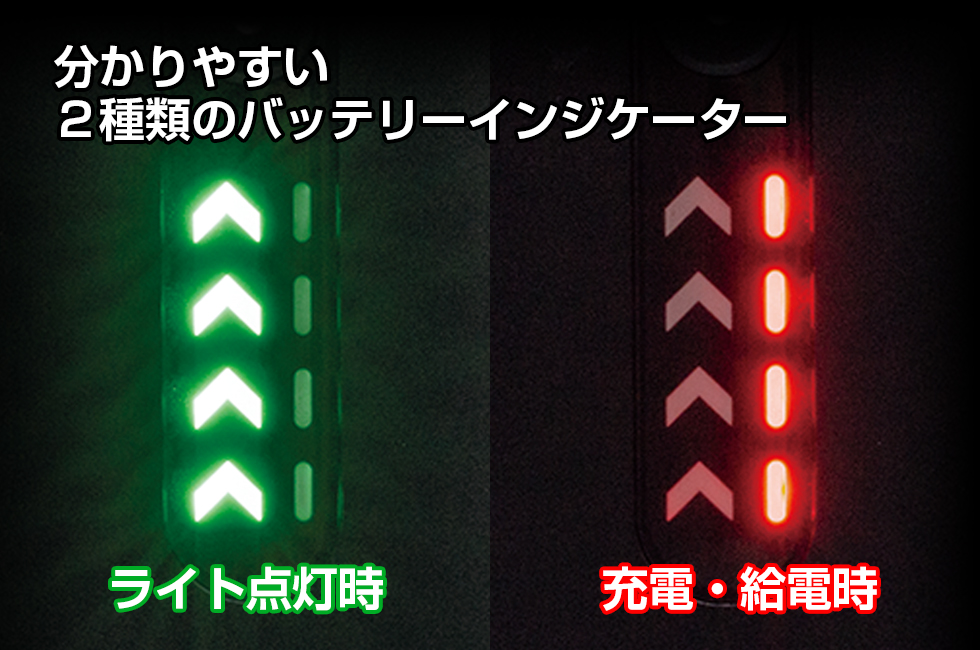 - バッテリーインジケーター:2種類のインジケーターで電池残量や充電状況を表示。