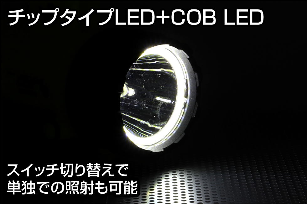 - 使用光源:高輝度チップタイプ白色LED×1個、高輝度白色COB LED×1個