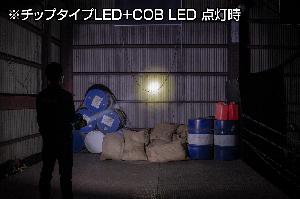 - 使用光源:高輝度チップタイプ白色LED×1個、高輝度白色COB LED×1個