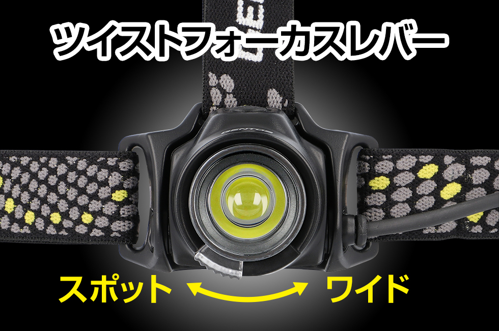 - フォーカスコントロール:レバーを操作することでスポットビームからワイドビームまで無段階に調節可能。