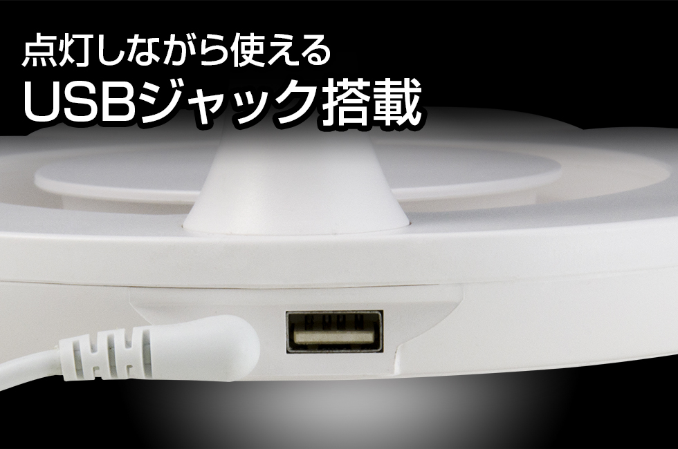 - 眼のことを考えたデスクライト,USBジャック付きで外部機器への給電可能(出力:5V/1A)