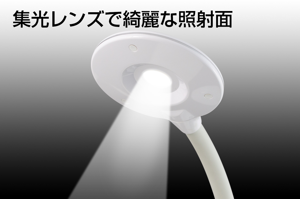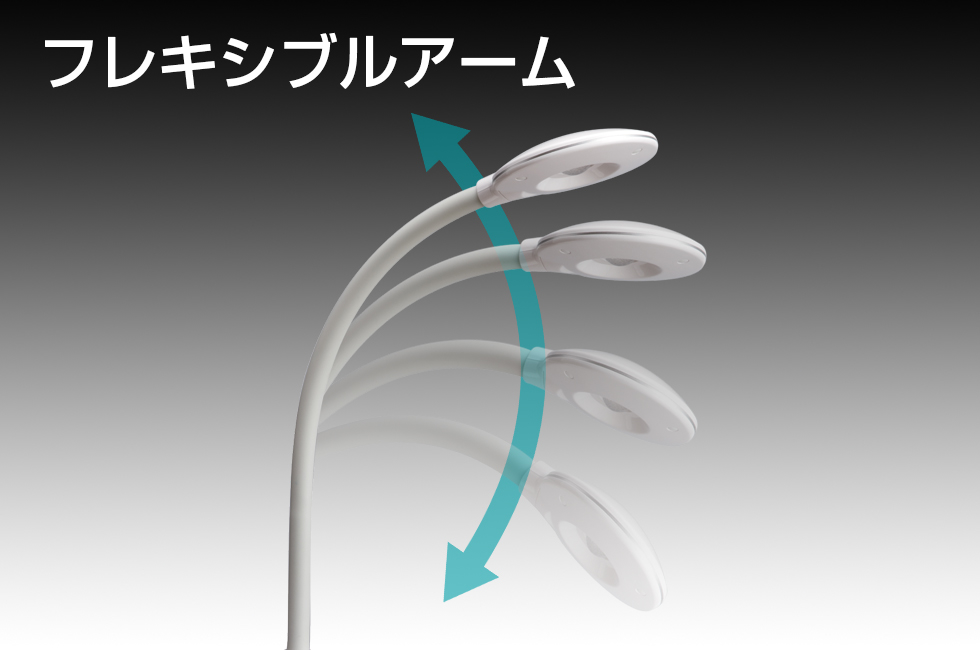 - フレキシブルアームで光の方向・向きを自由に調節できる。
