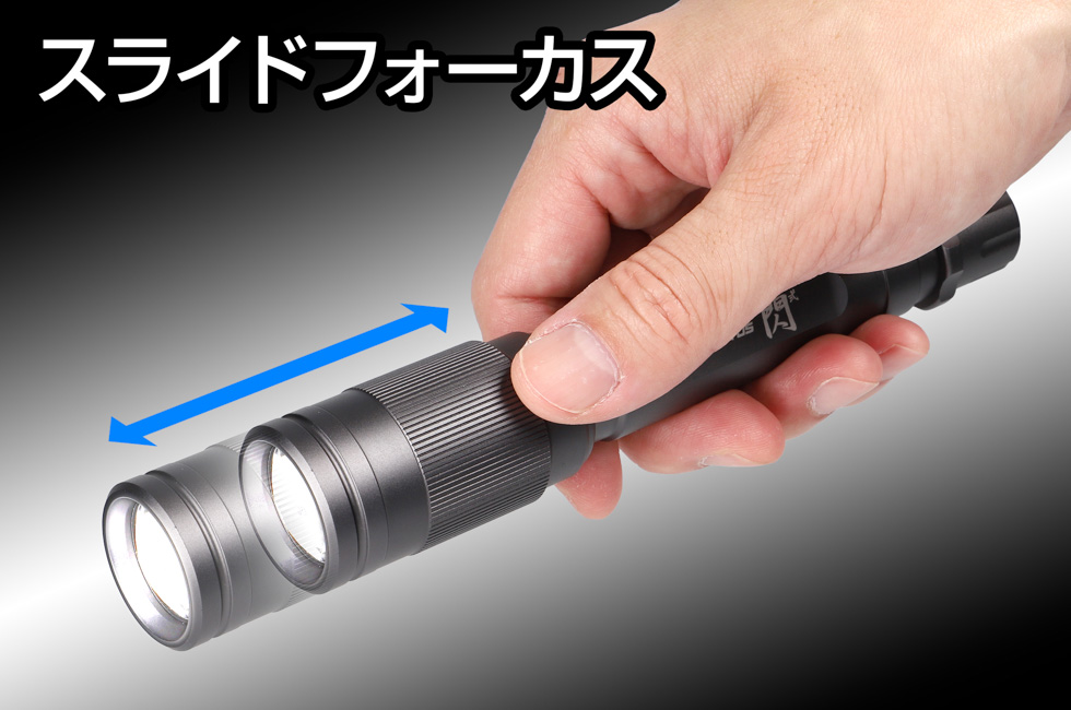 - フォーカスコントロール:フォーカスヘッドをスライドさせることでスポットビームからワイドビームまで無段階に調節可能。