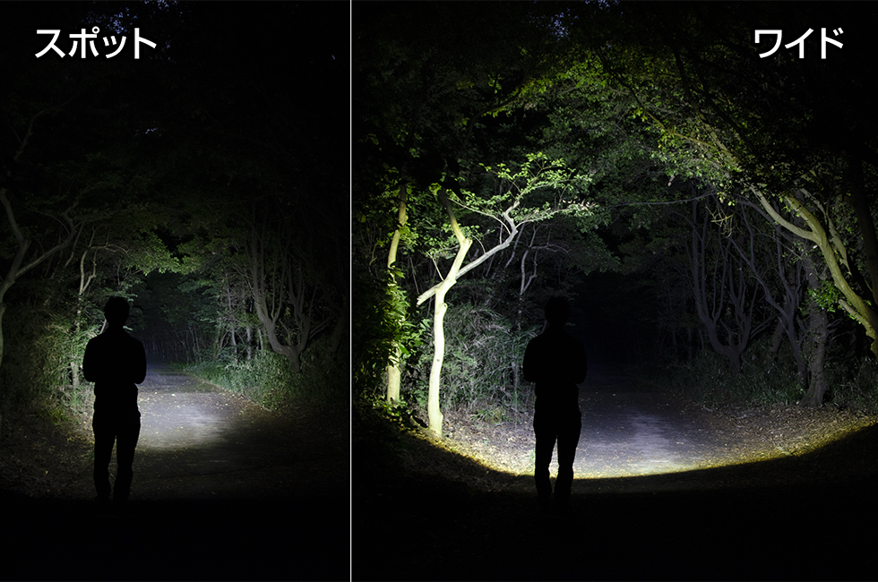 - フォーカスコントロール:ヘッド部分を前後にスライドすることでスポットビームからワイドビームまで無段階に調節可能。