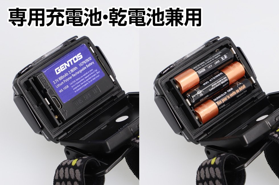 - 耐塵・防滴(IP64準拠)&2m落下耐久、乾電池/専用充電池(別売)兼用