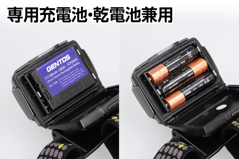 - 耐塵・防滴(IP64準拠)&2m落下耐久、乾電池/専用充電池(別売)兼用