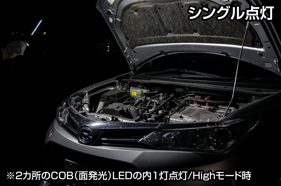 - 使用光源:高輝度チップタイプ白色LED×1個、高輝度白色COB LED×2個