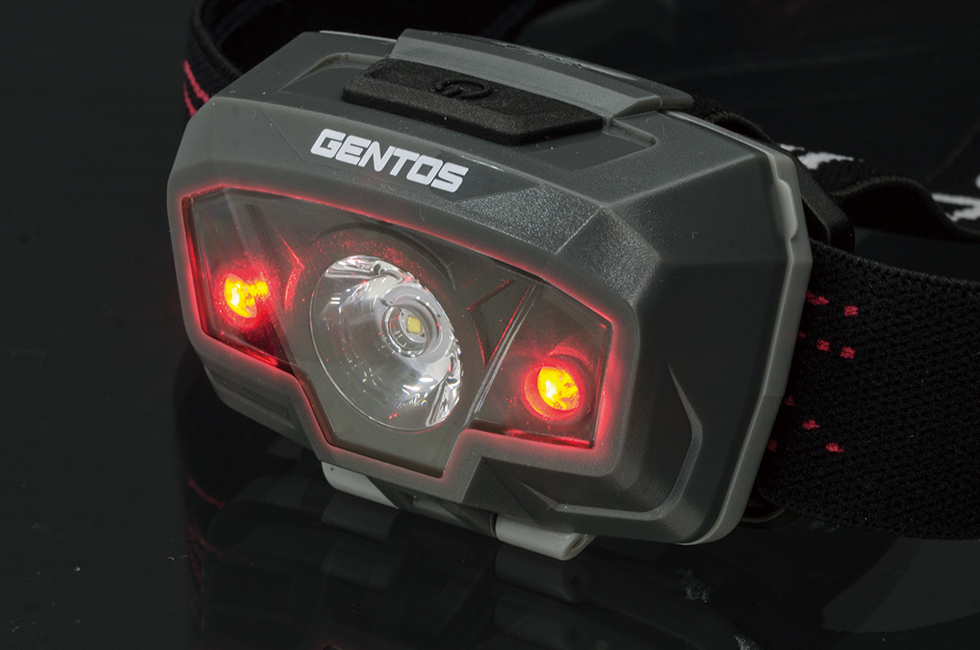 - 赤色サブLED:暗い場所で手元を照らすなど、メインLEDでは明るすぎる際に便利。