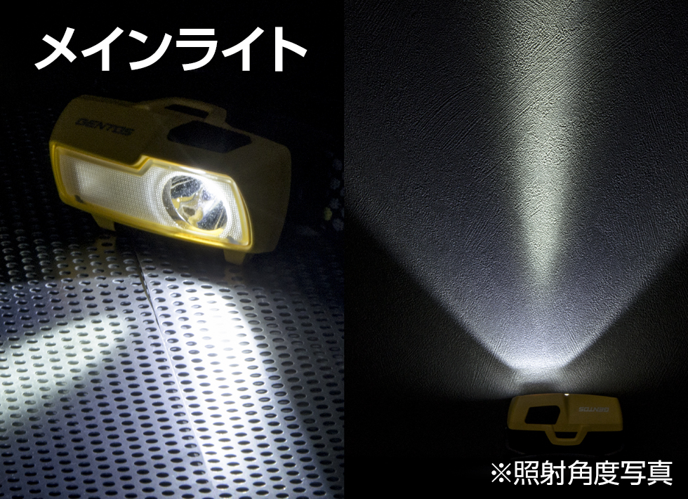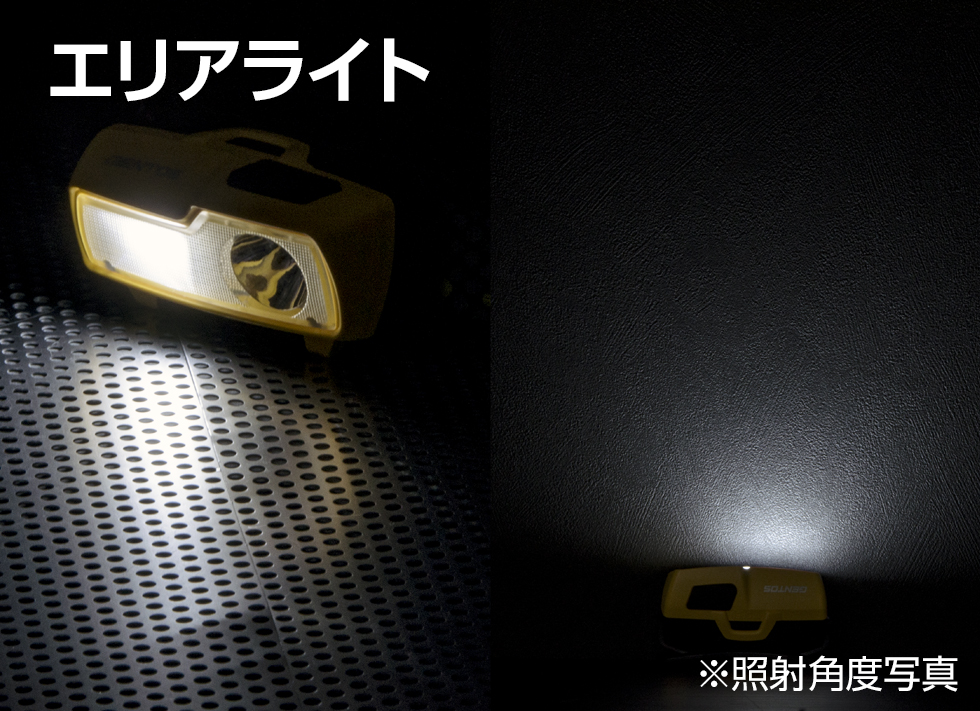 - 遠方照射のメインライトと広範囲照射のエリアライト搭載