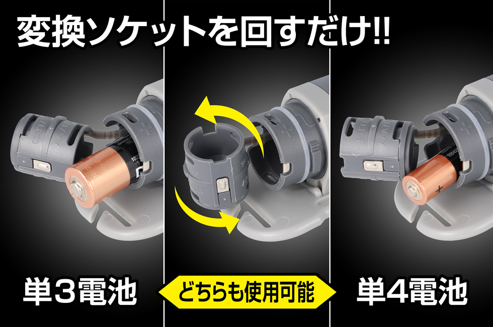 - 単3形乾電池 or 単4形乾電池どちらか1本で使える