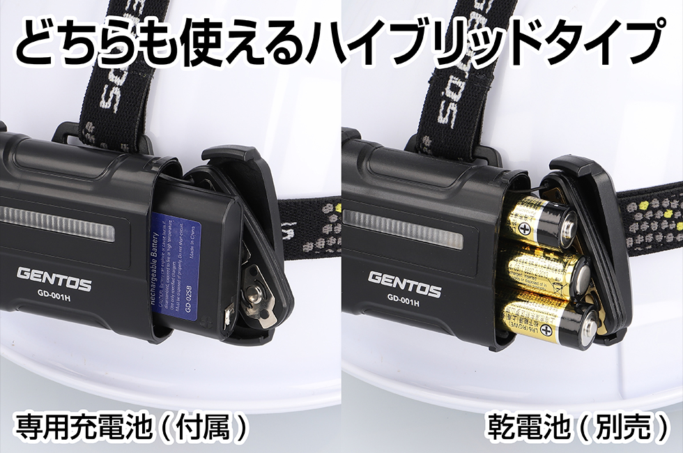 - 【ヘッド部】ヘッドプッシュスイッチ、【電池ボックス部】サイドスイッチ
