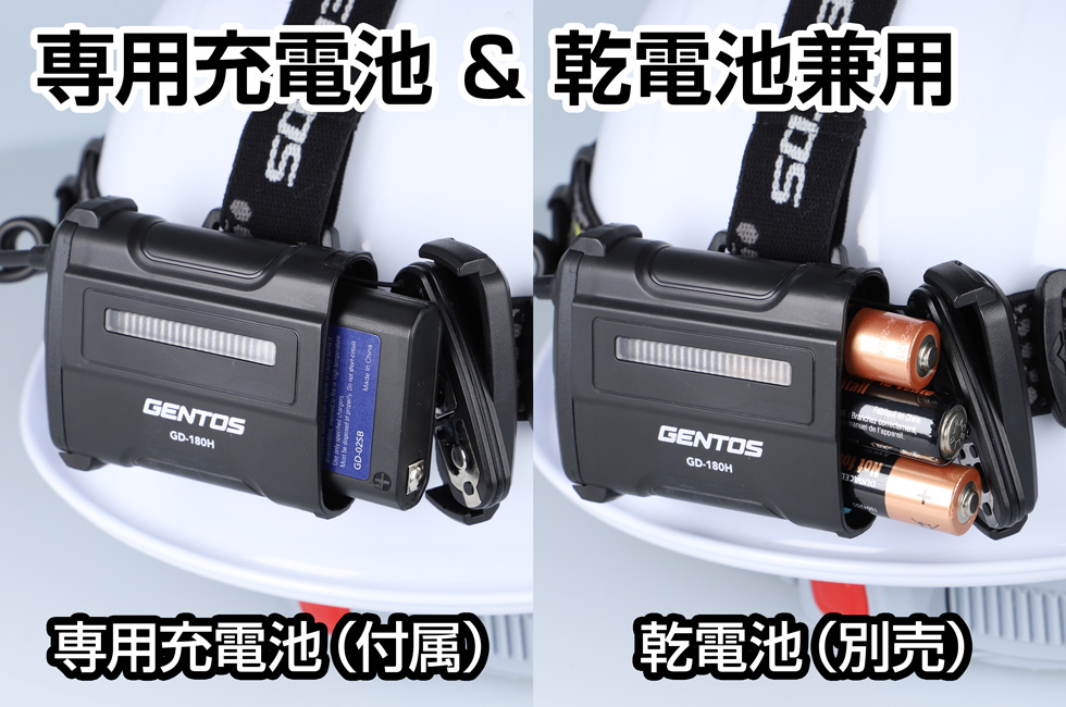 - 充電池 / 乾電池兼用、耐塵・防滴(IP64準拠)&1m落下耐久