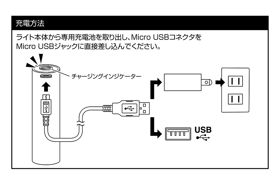 - 点灯時間(約):99時間(最小時)/ 3時間(最大時)※本体温度を感知し、自動で明るさを調節しているため、使用環境によってスペックは異なります。