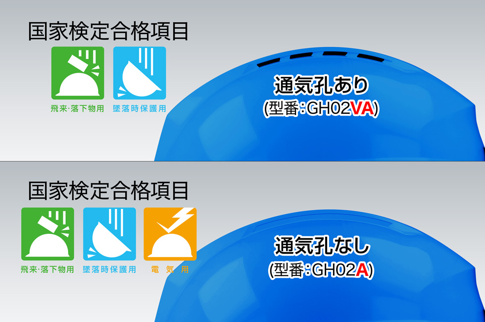 - 国家規格合格品:飛来・落下物用(型式検定合格番号:第TH5046号)、墜落時保護用(型式検定合格番号:第TH5047号)