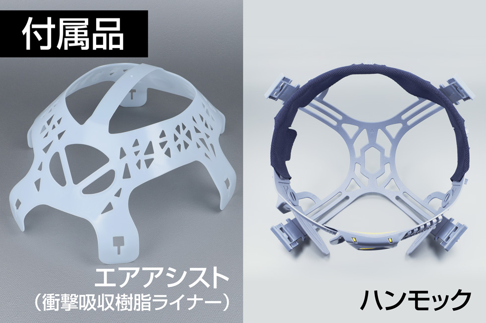 - 部品詳細:帽体、衝撃吸収樹脂ライナー、成形ハンモック、耳ひも2本、ワンタッチ留め具(あごひも)、ヘッドライト用アタッチメント(シリコンバンド+ヘッドライト用クリップ)2本
