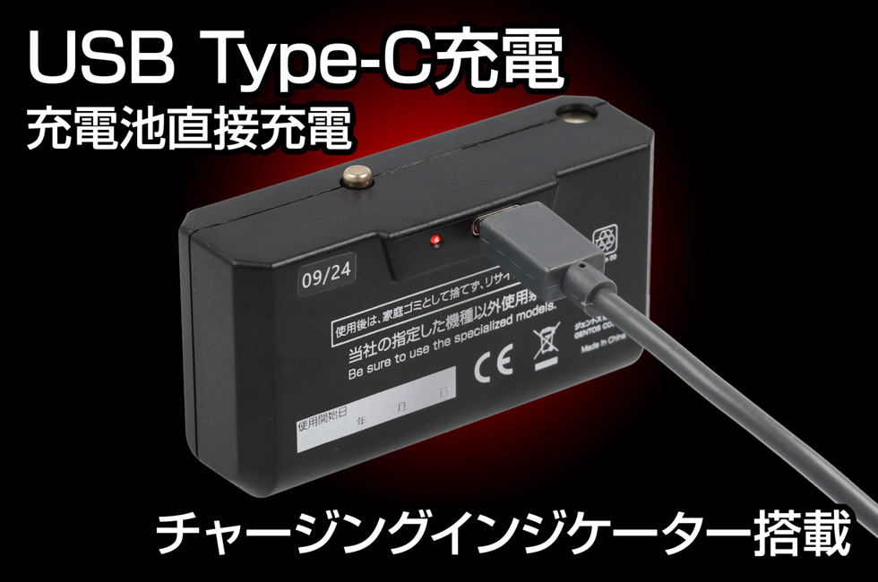 - 付属品:すべり止め付きヘッドバンド、シリコンバンド(バックル4個)、ヘルメットホルダー×4個、USB Type-Cケーブル(50cm)、専用充電池