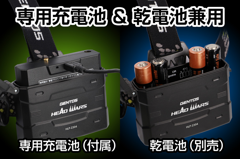 - 専用充電池/乾電池兼用、後部認識灯搭載で後方の安全性を確保