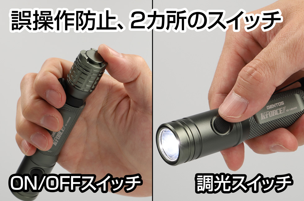 - ON/OFFスイッチ:テールスイッチ、調光スイッチ:サイドスイッチ
