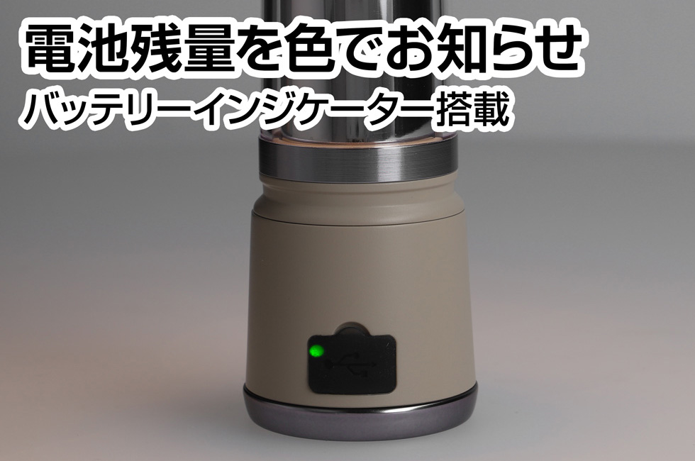 - 点灯時間(約):【ランタン】8時間(強) / 44時間(弱)、【トップライト】7.5時間(強) / 43時間(弱)、【全点灯】4時間(強) / 22時間(弱)、【キャンドル】78時間